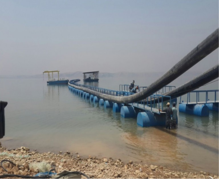 - Polyethylene over Floating Bridge and Floating intake Pump station of flowrate 2000 M3/hr. , head 75 M